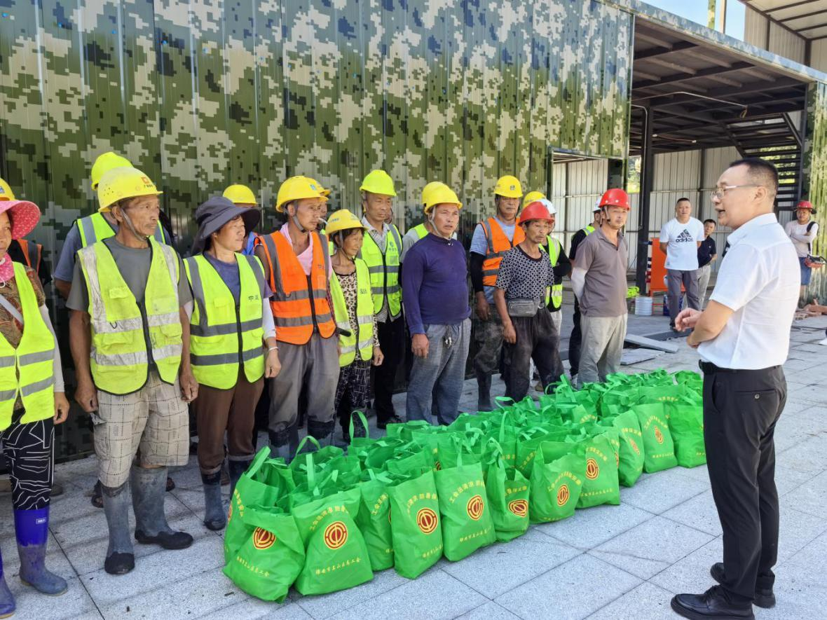 陳曦為項(xiàng)目一線(xiàn)建設(shè)者送上清涼大禮包,詳細(xì)了解了建設(shè)者們的工作情況及身體狀況,并叮囑建設(shè)者們要注意防暑降溫,做好暑期、汛期安全防范工作,將安全放在首要位置,確保安全生產(chǎn)。